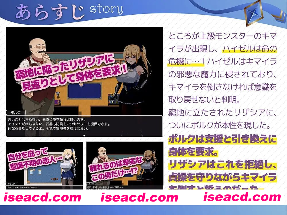 [PC-RPG] 更新[日式RPG/巨乳爆乳] 冒险者莉莎夏 -纠结与屈辱的3天- 冒険者リザシア -葛藤と屈辱の3日間- v1.01 AI汉化版+全回想存档 [1.40G][BD]