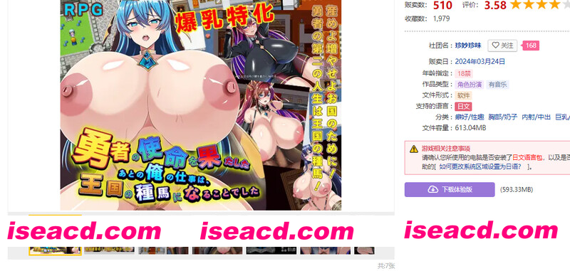 ​ 概况 在与魔王军的战斗结束后,原本在故乡过着平淡生活的勇者被国王召见,原因竟然是“成为王国的种马”。 这不仅是国王的四个女儿,还有在勇者秘书官赫洛伊吉亚的策划下,大臣们也要进行播种! 为了国家,繁衍后代吧!勇者的大剑可不能萎靡不振啊! △ 巨乳·...