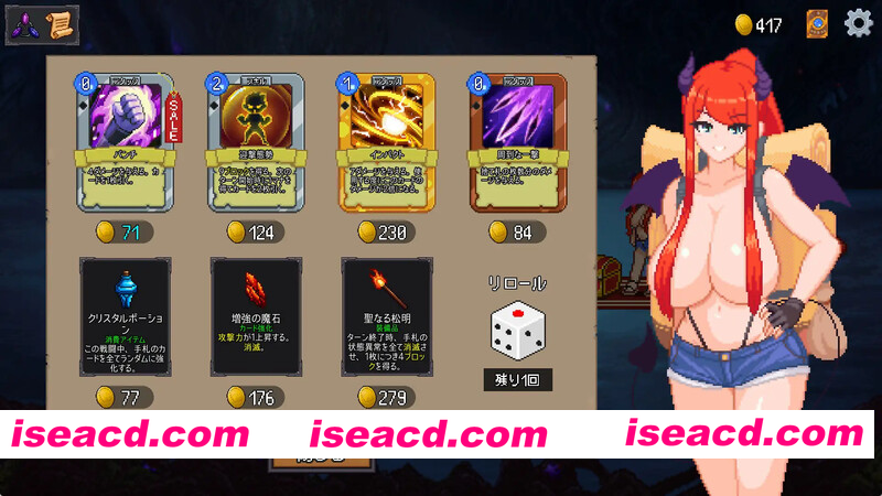 ◆故事介绍◆ 战斗中,魔物们时而用色诱之计试图削弱你的战斗意志,诱惑你。 夜夜袭击村庄,从男人身上榨取精气的魔物——萨基巴斯。 为了打倒统领那些魅魔的淫魔女王露克丝莉娅,你将踏上征程 她们踏上了挑战萨基巴斯森林的征程,那里是她们作为巢穴的地方。 被色诱之计所迷惑,难以抑制兴奋之情,不慎暴露出无防备的姿态 在森林中,除了魅魔之外,还有因淫魔妖气而变得色情的怪物女孩无情地诱惑你, 企图榨取你的精气,向你发起攻击! 转眼间就会被她们抓住,精气被榨干吧……。 不屈服于魔物的诱惑,抵达森林的最深处! 登场战斗角色超过 20 名! 游戏系统 所有角色均附带色情动画! ◆正宗的构筑型地牢轻战斗◆ 在战斗中,通过使用卡片来选择行动! 射精越频繁,陷入异常状态的可能性就越大 给予伤害或防御攻击…。 灵活运用具有各种效果的卡片是取得胜利的关键! 不断陷入不利局面…!? 在随机发生的事件和商店等处获取卡片来强化你的牌组! 用你独特的战术,迎战接连出现的强敌吧! ◆角色数量◆ 可战斗的敌方角色超过 20 个! 其中有些情节会因选择而变得色情 可能会发生的危险事件也…? 包含色情诱导攻击、色情攻击在内的动态动画超过 40 个! ◆战斗中的色彩诱导与 H 攻击◆ 此外还有多个事件点状黄色动画! ◆魅力十足且个性丰富的敌对角色们◆