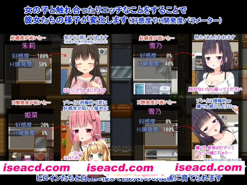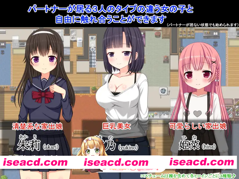 社团名 ひまわりドリル 发售日 2026年04月04日 0时 年龄指定 R18 作品形式 模拟、有音乐 分类 胸部/奶子 RPG制作大师 萝, NTR,后宫, 卖春,援交 ,怀孕, 处女,探索 ■剧情简介 失业后走投无路的主人公,某天在公园的垃圾桶里捡到了一张中了一等奖的彩票。 一夜暴富的主人公开始考虑投资,为了获得房租收入而购买了一栋公寓。 但在这个过程中,他突然想到一个主意:让女生们免费住进来,作为交换,能不能和她们做色色的事情? 一旦冒出这个念头,欲望便无法抑制,主人公立刻开始在SNS上招募女生…… ■游戏概要 这是一款自由度MAX的游戏。你可以随时去探望住在房间里的女生们,自由地和她们聊天、做色色的事情,或者偷看她们和伴侣相处的样子。 女主角是3位类型各异的女生,基本CG多达72张! 每位女主角也都有各自的立绘。 如果包含前戏、性交、与伴侣的H场景以及后宫玩法,总计约有86种玩法。(不包括基于好感度和H开发度参数产生的文本差分) 在无伴侣(无NTR模式)的情况下,基本CG为48张,玩法约为57种。 而且,不仅基本CG和差分数量庞大,H场景的文本自不必说,日常场景、与伴侣的事件以及结局等文本内容也非常丰富,整体内容量相当庞大。 ■特征 ◇无论你是喜欢NTR还是不擅长NTR,都能享受的设定 本作正如标题所示,推荐给想享受NTR的玩家, 但在游戏开始时,你可以选择女主角是否有男朋友或丈夫。(之后她也不会和别人交往) “我不擅长NTR,就想让普通的、处女的女生们住在公寓里,按自己的喜好去开发……” 本作也推荐给这类不擅长NTR的玩家。 当然,两种都能接受的玩家则可以同时享受两种玩法,非常划算! ◇可以体验到女生们仿佛真的在生活一般的感觉 学习的时候、放松的时候、吃饭的时候、洗澡的时候, 甚至上厕所的时候、在有NTR的模式下和恋人/丈夫在一起的时候…… 你可以自由介入她们的私生活,随心所欲地和她们聊天、做色色的事情。 此外,女生们的活动时间各不相同,而且节假日和平日的情况也有所不同, 因此你可以体验到女生们仿佛真的在生活一般的感觉。 ◇好感度系统 好感度可以通过聊天或给零花钱等方式提升。 好感度会改变她们的态度,影响对话和H过程中的内容。 当然,根据对话内容和行为,好感度也会下降。 ※零花钱的给予上限根据难度有所不同。(如果在意,也可以在设置中进行微调) ◇H开发度系统 这是与女生们进行色色的事情后会提升的参数。 最初只能请求手交等轻度玩法,但通过与她们多次经历色色的事情, 这个参数会提升,可请求的玩法会增加,她们会变得更敏感,插入时从必须戴套变为可以无套、允许内射等, 她们会变得越来越淫荡。 在有伴侣的情况下,她们对伴侣的感情也可能会发生变化。 此外,该参数与好感度参数也有密切关系,会产生“虽然讨厌这个人,但还是会有感觉”、“对主人公产生恋爱感情”等各种模式的变化, 让你能切实感受到正在“开发”女孩子。 ◇换装系统 通过请求女生换衣服,可以让她们穿着指定的服装生活。 便服、制服、体操服、裸体围裙、全裸等,每位女主都有不同的服装,当然也会在H玩法中体现。 (每位女主的服装有3种,包括全裸) ※在和伴侣在一起的时间里,会恢复平时的服装。 ◇也能享受与女生的普通对话 不只是H,你也可以和女生普通地聊天。 除了闲聊、色色的问题等对话外,根据地点和时间段, 女生正在做的事情也会变化,你可以和她聊她当前正在做的事,从而窥见她真实的日常生活。 通过这样的对话,你可以了解她们的内心,在有伴侣的模式下,还可以探听她们对男朋友/丈夫的感情等, 光是对话就足够有趣了。 另外,你还可以辱骂她们,因此也满足了“想对女生说讨厌的话”或“想被她们讨厌”等需求。 ◇真实的生理周期&怀孕系统 她们的身体状况每天都会变化,分为安全日、危险日、生理期等。 在危险日内射,怀孕的概率会变高, 让你体验到如同现实一般“可能会怀孕”的紧张感,也可以认真地“造人”。 你可以让有男朋友/丈夫的女生怀上主人公的孩子,也可以在恩爱H之后让她怀孕, 或者让她“虽然不愿意但还是怀上了”……一切展开都随你自由。 ◇与伴侣度过的事件会逐步推进的系统(仅限有伴侣模式) 内容当然因女主角而异,在有男朋友的情况下,男朋友会定期来访并触发事件。 从最初只是接吻就结束,到逐渐进行更色色的事情,事件会随着天数推进。 而有丈夫的女主角,除了各种夫妻事件外,在反复尝试造人的过程中, 有可能会怀孕,这就像存在一个“时间限制”,更具游戏性。 此外,主人公还可以主动去干扰事件,有可能阻止其进展。 因此,你可以阻止并夺走她们的关系,也可以让她们分手,反之也可能失败输给伴侣,或者故意放任不管,守护她们幸福的时光,成全她们的恋情。 请务必享受你喜欢的展开。 ◇充实的夜袭行为 夜间,你可以强行袭击睡着的女生。 可以享受充满刺激感的时光,甚至能做各种意想不到的事情。 ◇女生们也会主动求欢 虽然需要满足一定条件才能实现,但存在女生主动求欢的“逆夜袭”。 在那里你可以和女生们自由玩耍,根据条件,还可能触发3P或4P等多人后宫玩法。 ◇多种多样的结局 游戏可以无限期地玩下去,但满足一定条件后就会进入结局。 从快乐结局、普通结局、NTR结局、后宫结局到坏结局等,本作拥有过去最多的结局种类。 虽然包含