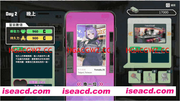 ※自我提升,吸引异性游戏中,每日分为[早上、下午、晚上]三个时段。每个时段可以进行[打工]、[训练],提升自己的持久力、爆发力,来获得异性青睐,让她们愿意与你约炮,并在主线与各种事件中,逐步拉近与角色们的关係吧!