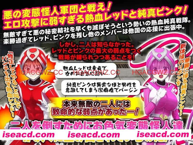 对抗邪恶的变态怪人军团!面对色情攻击毫无抵抗力的热血红与纯真粉!〈过于大意的红与粉〉这支热血纯真战队实力过于强大,正以横扫之势准备迅速消灭邪恶秘密结社由于胜券在握,除红与粉外,其他成员均已出国支援他国任务。然而,两人并不知道——针对红与粉致命弱点的作战策略正在暗中酝酿!热血红是个处男,对女性诱惑毫无抵抗力。纯真粉则是异常在意男性的洁癖处女。〈热血纯真战队的最大弱点〉“看我来修正你们!”——喊着口号挥出拳头的热血红之拳!以艺术体操彩带华丽应战的纯真粉!原本所向无敌的两人,却存在着致命弱点——!为了击败他们,擅长色诱的变态怪人们正被源源不断地制造出来!