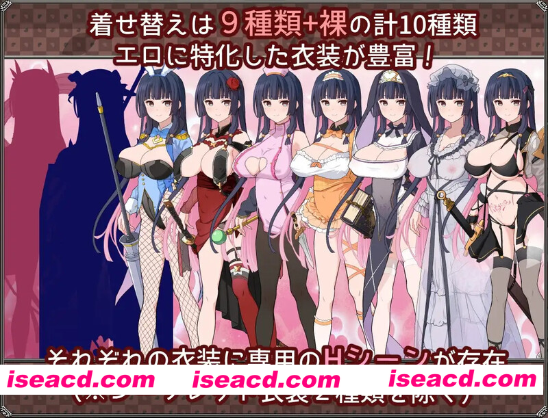 [游戏特色] • 强化了砍杀(Hack and Slash)元素,自由度更高。 • 主角等级和属性无限上升的超通胀游戏。 • 拥有众多丰富且个性化的技能,战略性多样。 [关于情色场景] 总计 105 个场景 • 主要场景(使用单独 CG)55 个 • 次要场景(使用通用 CG)50 个 [CG 数量] ・基本 CG 共 80 张 ・差分超过 500 张 [换装相关] • 换装种类:9 种 + 裸体差异 ※ 包含 2 种秘密服装 特定服装或裸体状态需提升“淫欲度”方可解锁。 [H 元素] ・装甲破坏 主人公在受到一定次数的攻击后,服装会逐渐破损。服装随时可以修复。 ・H 状态 ・怀孕/分娩 [深入要素] 游戏中存在许多与故事推进无关的深入要素。 要完全通关所有内容极其困难。 [其他系统] ・可处女通关 ・多重结局 ・游戏包含周目要素 [便捷功能] ・战斗加速 ・战斗结果自动处理 ・跳过开场动画 ・消息窗口临时隐藏 ・通过帮助了解操作说明及术语解释 ・结局后可完全解锁所有成人场景 [没有哦!]·战斗情色(仅限衣物破损)·战斗失败情色·情色类不良状态 [更新日志] 更新信息 BUG修复 细微的数值调整 BUG修复 修复了存档画面 可能已修复了当Windows语言设置为非日语时偶尔会发生错误的问题