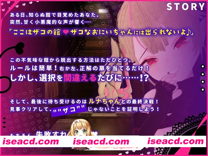 社团名:#こうねつひ ▫️名称:雌小鬼露娜酱的废物之馆 ▫️原名:メスガキルナちゃんのざこの館 ▫️版本:v02 ▫️贩卖日:2025年08月01日 ▫️标签:#SLG #AI汉化 #PC #MTool #CV #AMSR #动态 #魅魔 #小鬼 #男性受 故事介绍 某天,你在一个陌生的公馆中醒来。 突然,响起了一个甜美又带着小恶魔般气息的声音: 「这里是杂鱼公馆 杂鱼哥哥是出不去的哦。」 从这座诡异的公馆中逃脱的方法只有一个。 规则很简单!只要从左边或右边的门中,选中正确的那个就行! 但是,每次选择错误之时……!? 而最后等待你的,是与露娜酱的最终决战! 成功通关,来证明你"不"是nn杂鱼吧! 当然,如果失败的话…… ──你能否克服这场试炼呢? 出错请更新最新至WINRAR进行或自行修复,码没错本人亲测后上传,码看资源左下方小红字或点我头像看个人签名 关于问题:看见有些不会的小哥哥小姐姐们可以去讨论区看看啦有你们的方法哦~ 将abc后缀改成zip或7z都可以,如自带有压缩后缀则删除.abc即可 https://51acg.buzz/forum.php?mod … p;extra=#pid1713748 迅雷云 FM/迅雷云 阅读全文 资源下载下载价格VIP专享仅限VIP下载升级VIP立即购买 常见问题 解压密码错误?点击查看》PS:如果提示密码错误,推荐使用Bandizip解压或修改后缀为zip 有些人是因为解压密码复制错误,请手动扩选解压密码,不要直接点复制。 0 0