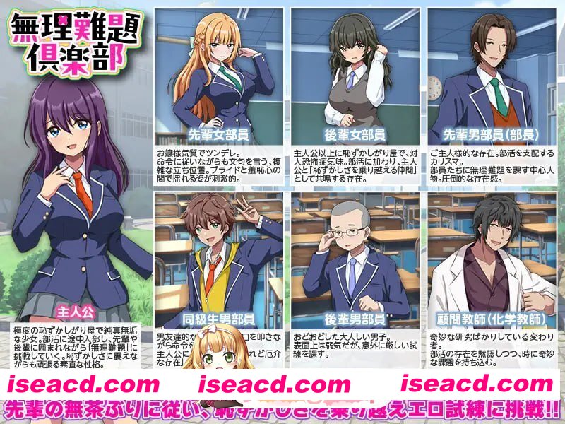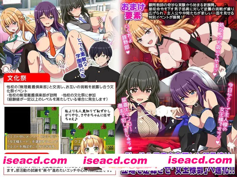 入正:https://www.dlsite.com/maniax/work/=/product_id/RJ01544053.html 社团名:#生まれ変わったら王様になりたい ▫️名称:无理难题俱乐部 ▫️原名:無理難題倶楽部 ▫️版本:——— ▫️贩卖日:2026年01月10日 0时 ▫️标签:#RPG #AI汉化 #PC #MTool #色诱 #学园 #背德 #日常 #后宫 #羞耻 #调教 #沉迷快乐 旨在克服害羞、怕生的“治外法权”式奇妙社团。 遵从前辈的胡来要求,克服羞耻心,挑战情色试炼!! <社团成员> 主人公 极度害羞、纯真无垢的少女。中途加入社团,在前辈和后辈的包围下挑战各种“无理难题”。虽然会因为羞耻而颤抖,但性格坦率而努力。 前辈女部员 带有大小姐气质、傲娇类型。虽然会听从命令但也会抱怨,处于复杂的立场。在自尊心和羞耻心之间摇摆的姿态极具刺激性。 后辈女部员 比主人公还要害羞,带有对人恐惧症的倾向。加入社团后,成为与主人公共鸣、共同“克服羞耻感”的伙伴。 前辈男部员(部长) 如同主人般的存在。支配社团的领袖人物。是向部员们下达无理难题的核心人物,拥有压倒性的存在感。 同级男部员 如同男性朋友般的立场。一边开着玩笑一边下达命令。对主人公来说是“虽然随和但又麻烦的存在”。 后辈男部员 怯懦内向的男生。表面看起来胆小,却会下达意外的严格试炼。 顾问老师(化学教师) 总是进行各种奇怪研究的怪人。默许社团存在的同时,偶尔也会带来奇特的课题。 出错请更新最新至WINRAR进行或自行修复,码没错本人亲测后上传,码看资源左下方小红字或点我头像看个人签名 关于问题:看见有些不会的小哥哥小姐姐们可以去讨论区看看啦有你们的方法哦~ 将abc后缀改成zip或7z都可以,如自带有压缩后缀则删除.abc即可 https://51acg.buzz/forum.php?mod … p;extra=#pid1713748 迅雷云 FM/迅雷云 阅读全文 资源下载下载价格VIP专享仅限VIP下载升级VIP立即购买 常见问题 解压密码错误?点击查看》PS:如果提示密码错误,推荐使用Bandizip解压或修改后缀为zip 有些人是因为解压密码复制错误,请手动扩选解压密码,不要直接点复制。 0 0