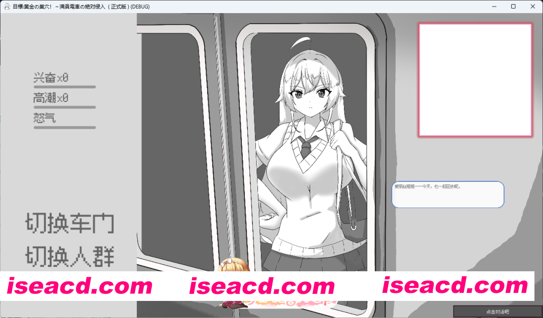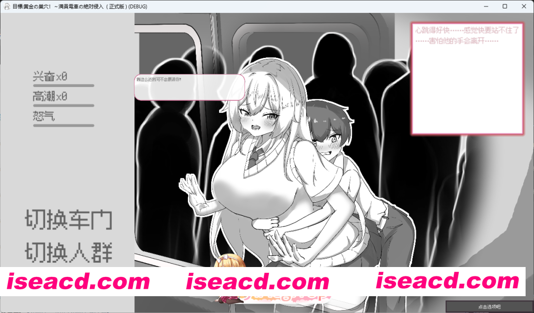 《目標:黄金の巣穴!~満員電車の絶対侵入》是一款以都市通勤电车为舞台的日式成人向互动游戏。在拥挤的车厢中,您将与金发碧眼的少女爱丽丝展开一场充满紧张感与禁忌感的特殊互动。