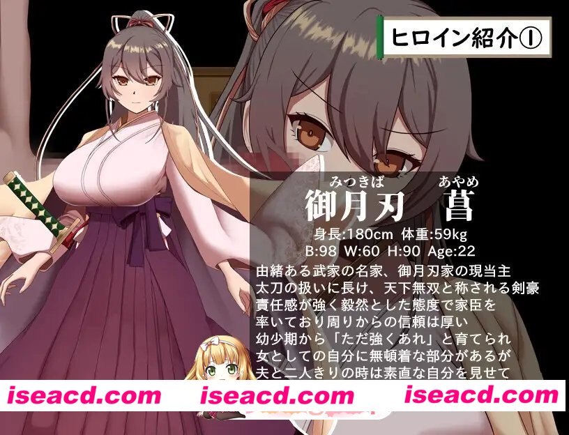 名门武家御月刃家的现任当家,精通太刀,被誉为天下无双的剑豪。责任感强,以毅然态度率领家臣,深受周围信任。自幼被父亲教导”只要强大就好”,对身为女性的一面有些迟钝,但与丈夫独处时会展现坦率一面,主动撒娇索求。
