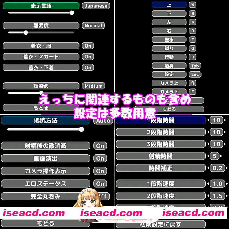■探索系统 旅途中将面临各种困难 通过探索寻找线索并解决难题是本作的核心流程 ■事件系统 途中会触发过场动画、小游戏、情色事件等多种剧情事件 过场动画中女性角色均配有语音 小游戏设计兼顾不擅长玩家的通关体验 情色事件可选择回避而非强制接受 ■360度全景视角 情色场景支持3D技术实现的 360度自由视角,可从不同角度观赏 ■自定义设置 通过色彩设置可更改主人公配色方案 游戏设置支持随时随地进行服装穿脱调整 设置不仅适用于游戏内,同样可在画廊模式生效 另配备多种其他可选功能